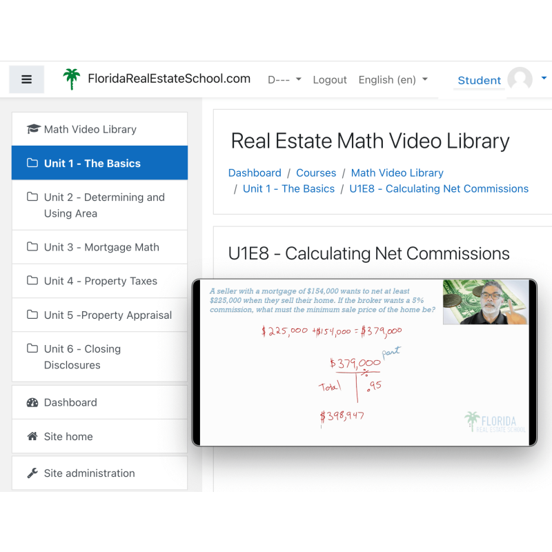 Our expert instructors will guide you through a series of engaging video lessons that cover fundamental math concepts and their practical applications in the real estate industry. By the end of this course, you will have the confidence and proficiency to tackle various real estate math problems, including calculating property values, mortgage payments, commissions, and more.